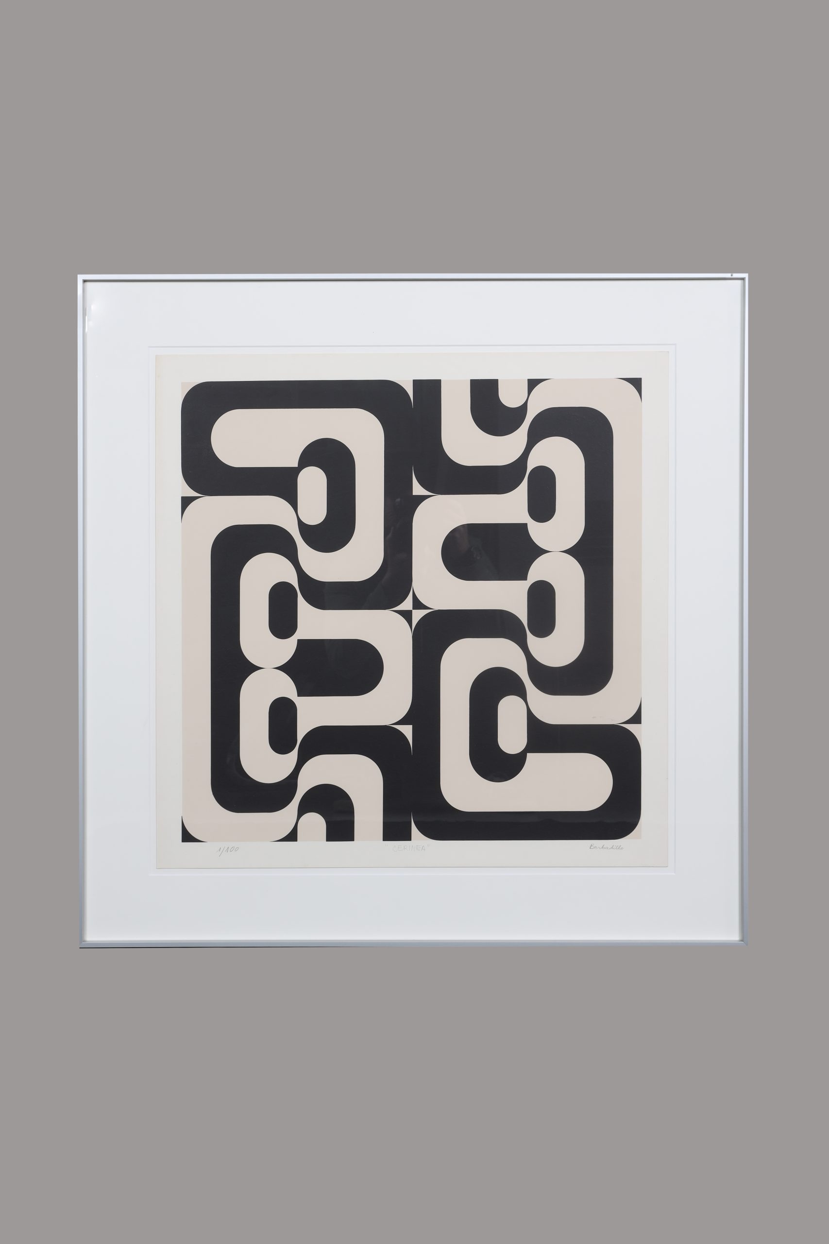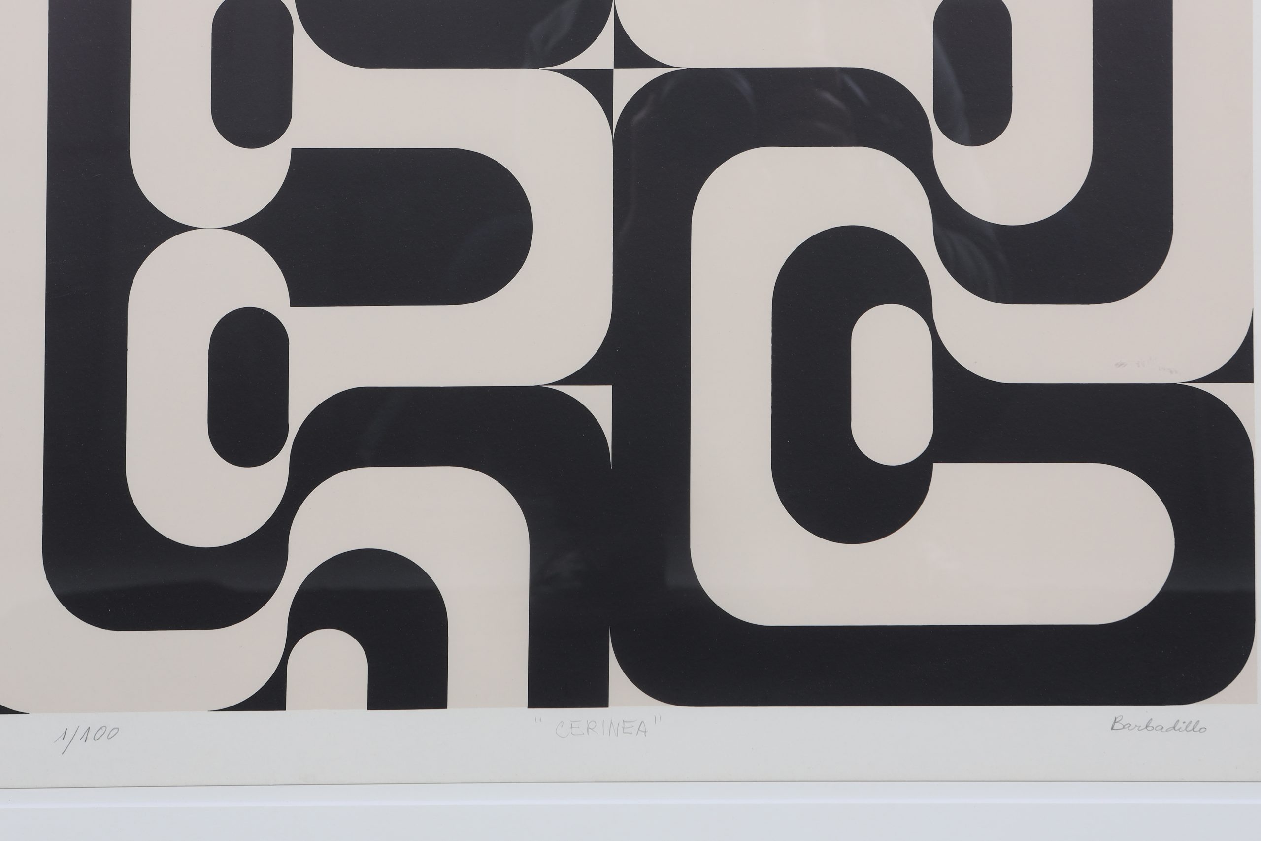 Manuel Barbadillo (1929–2003) es una figura fundamental de la abstracción geométrica en España y pionero mundial del arte cibernético. A partir de 1968, como miembro del Centro de Cálculo de la Universidad de Madrid, sustituyó la pincelada subjetiva por un método combinatorio basado en el uso de ordenadores. Su estilo se articula en torno al módulo: una unidad geométrica simple, de naturaleza binaria (blanco y negro), que el artista somete a rotaciones, simetrías e inversiones mediante algoritmos para generar estructuras de gran complejidad rítmica. En su obra, la tecnología no es un fin, sino una herramienta para alcanzar una «razón poética» que explora el orden, el equilibrio y la repetición como principios universales de la forma.