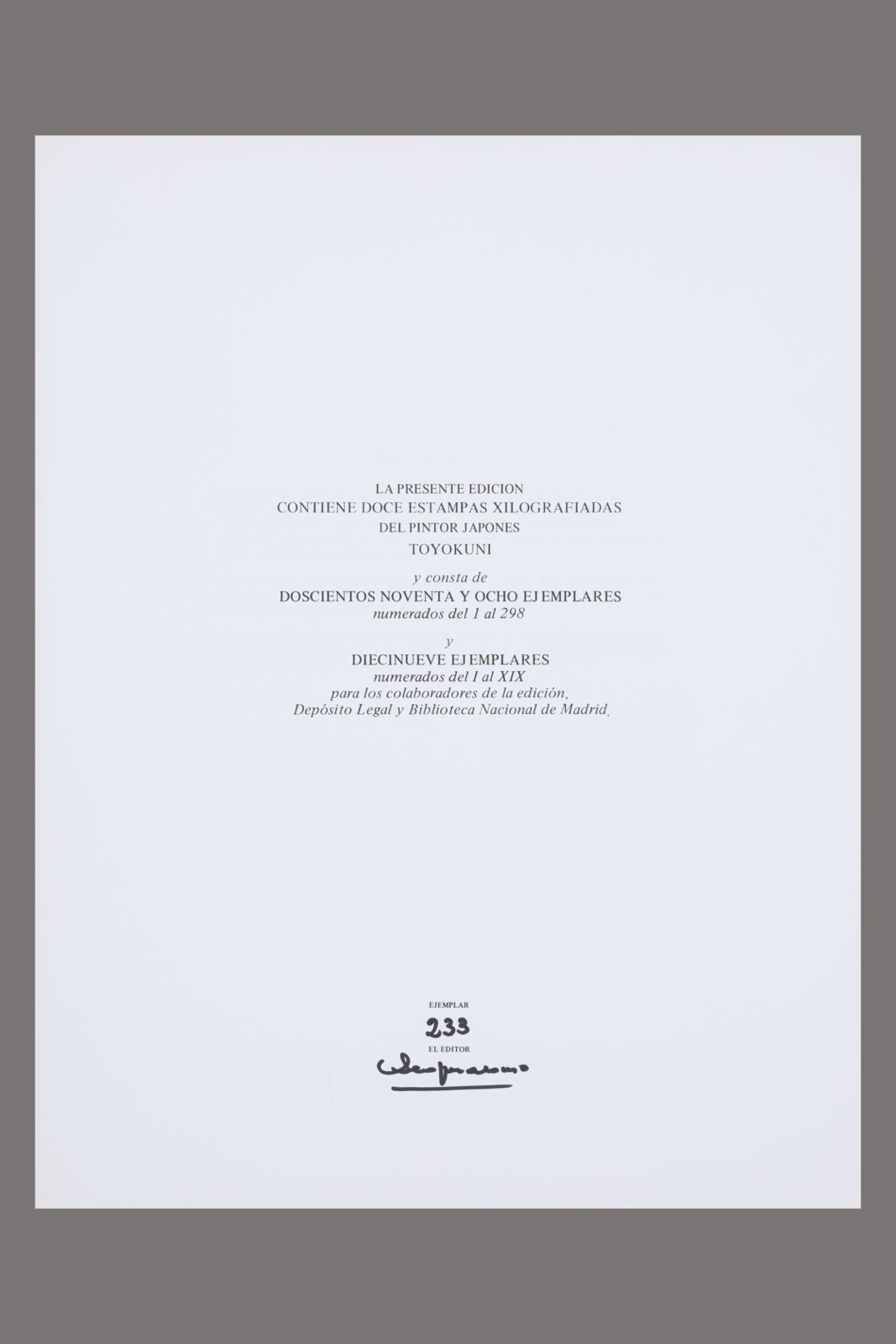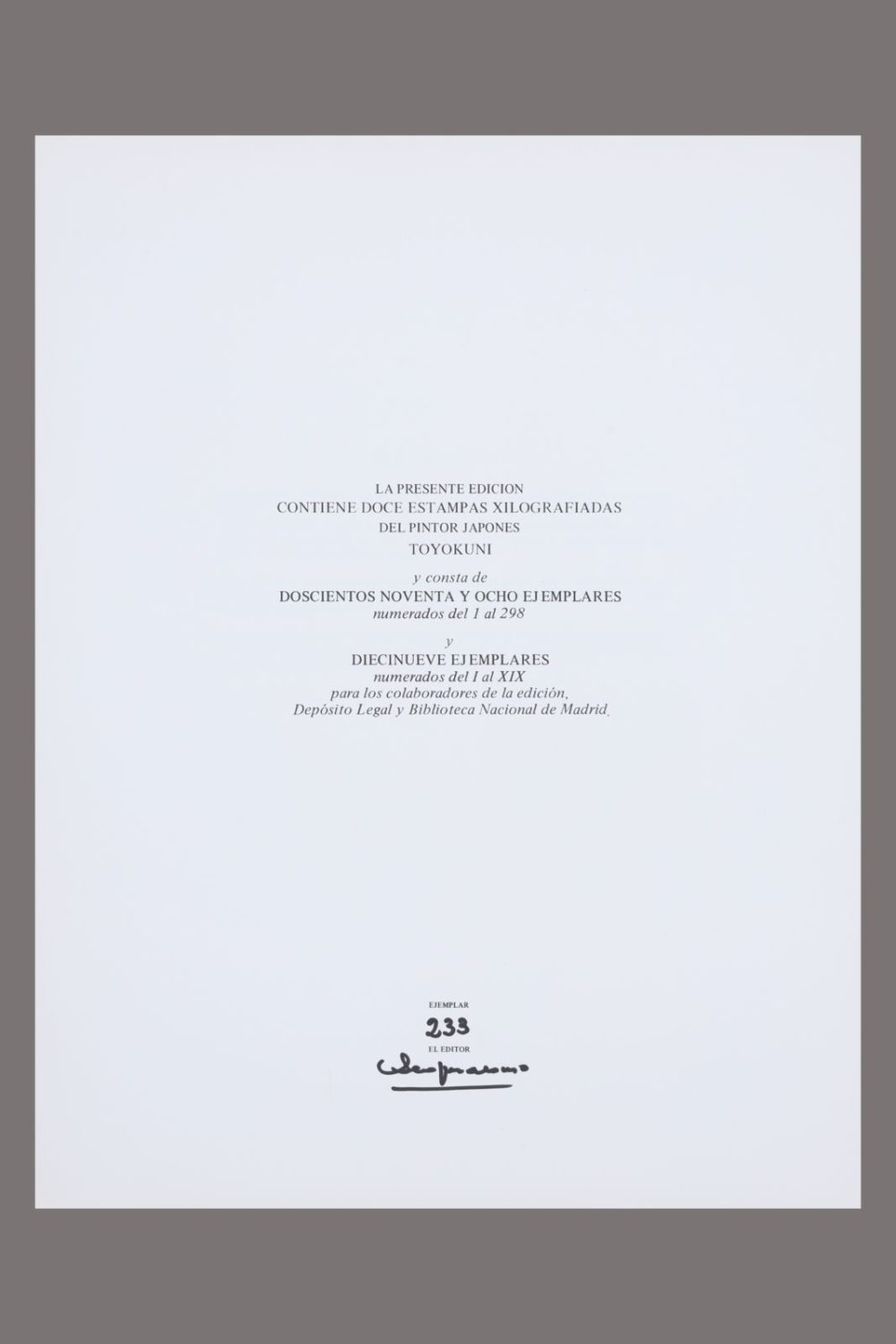 Objeto: Obra gráfica. Edición limitada 233/298